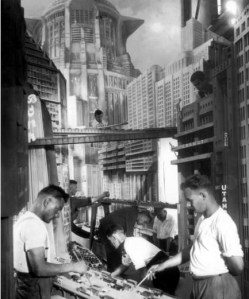 Han llegado a mis manos estos fotogramas de la increíble película Metrópolis (Fritz Lang, 1925). Lo curioso fue poder observar la foto del montaje de la maqueta de la mega-polis que ya la hubiera querido para sí en Sr Lucas.