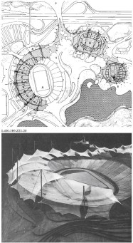 Frei Otto, un arquitecto e ingeniero alemán, dispone de una de las biografías más interesantes que uno pudiera desear escribir. Baste con decirles que habiendo nacido en 1925, y después de haber sido piloto de la luftwaffe, prisionero de guerra y arquitecto reconocido con numerosos premios, vive retirado desde 1970 colaborando esporádicamente en lo que le apetece. No sé si envidiable, pero al menos fascinante. Les dejo la evolución del proyecto en imágenes: