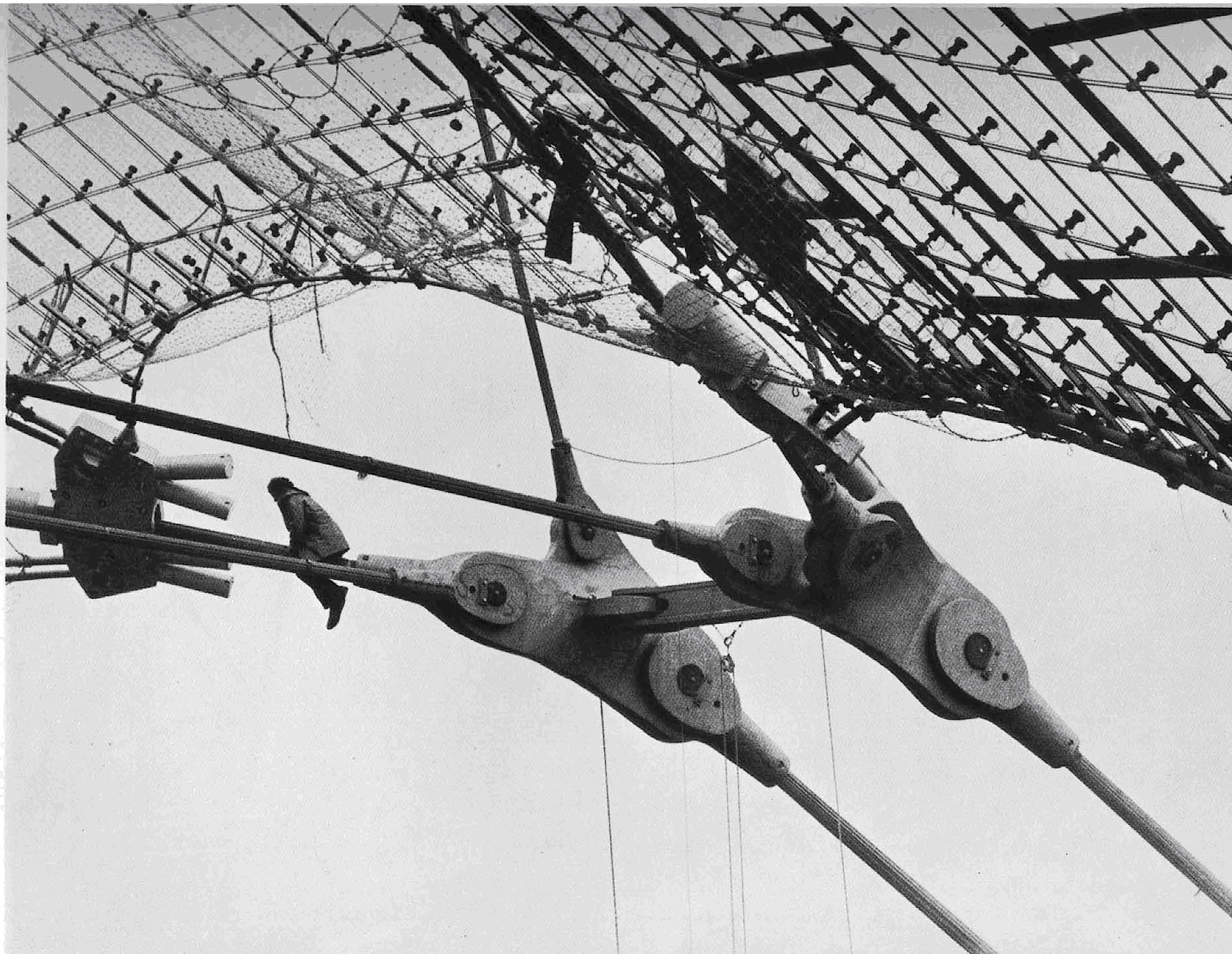 Frei Otto, un arquitecto e ingeniero alemán, dispone de una de las biografías más interesantes que uno pudiera desear escribir. Baste con decirles que habiendo nacido en 1925, y después de haber sido piloto de la luftwaffe, prisionero de guerra y arquitecto reconocido con numerosos premios, vive retirado desde 1970 colaborando esporádicamente en lo que le apetece. No sé si envidiable, pero al menos fascinante. Les dejo la evolución del proyecto en imágenes: