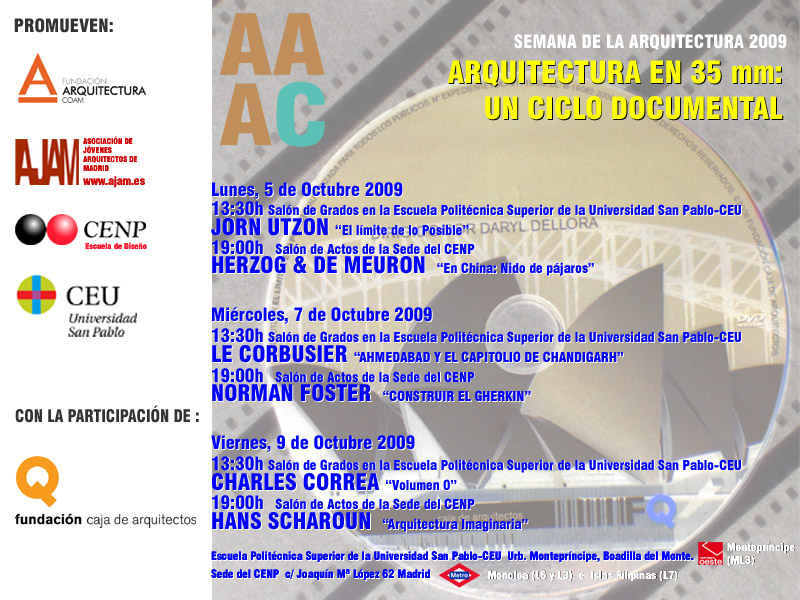 Una Primicia en la Semana de la Arquitectura de Madrid Esta tarde se proyecta un documental editado por la Caja de Arquitectos sobre la obra de Herzog &De Meuron en China aún no distribuido en España, así que pueden verlo por vez primera en Madrid 🙂 Más información de la proyección: Comparte esto: Haz clic para compartir en Facebook (Se abre en una ventana nueva) Facebook Haz clic para compartir en X (Se abre en una ventana nueva) X Me gusta Cargando... Relacionado
